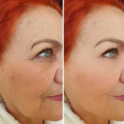 Left: Unfiltered‑water face – visible dryness, fine lines, and a dull complexion.